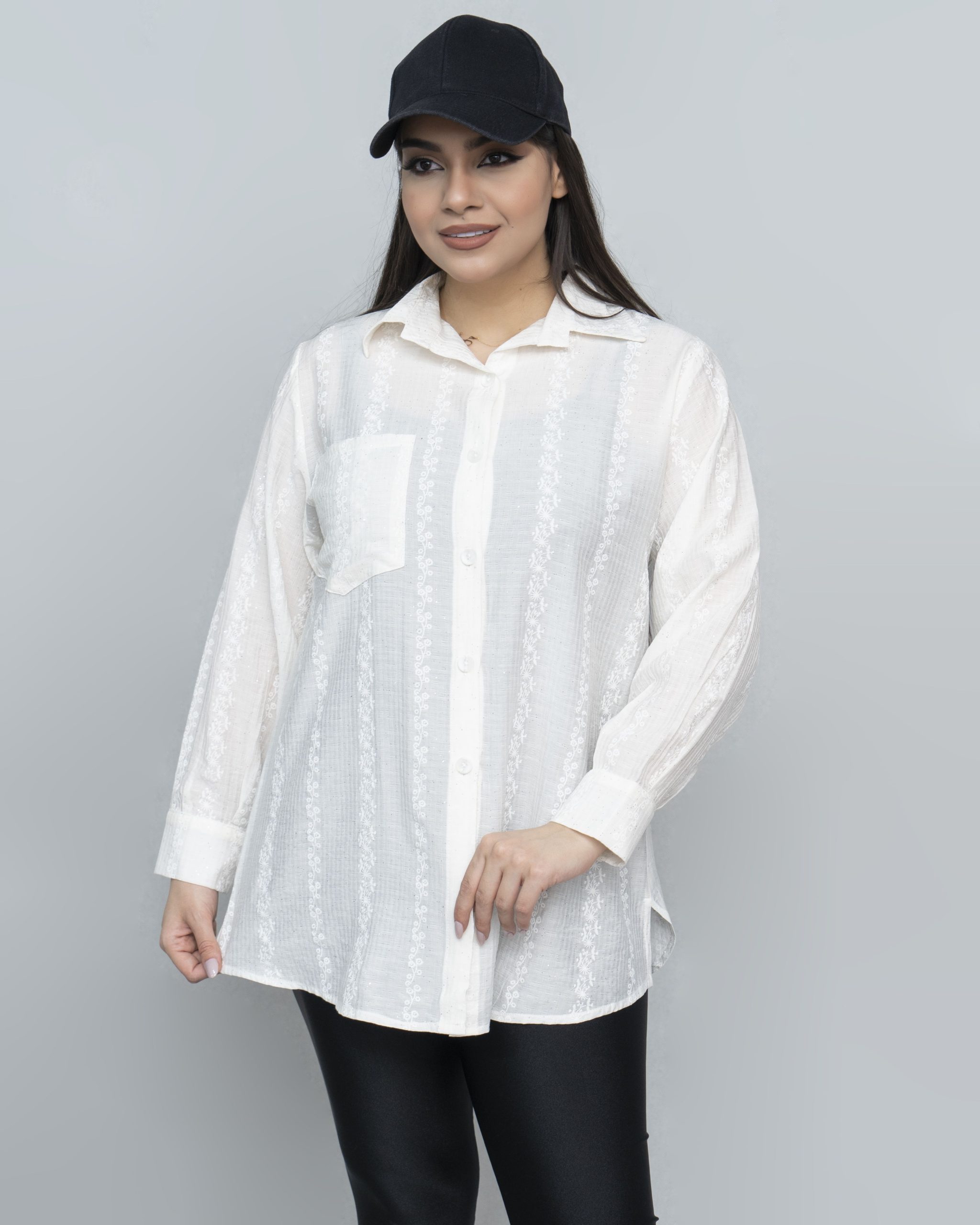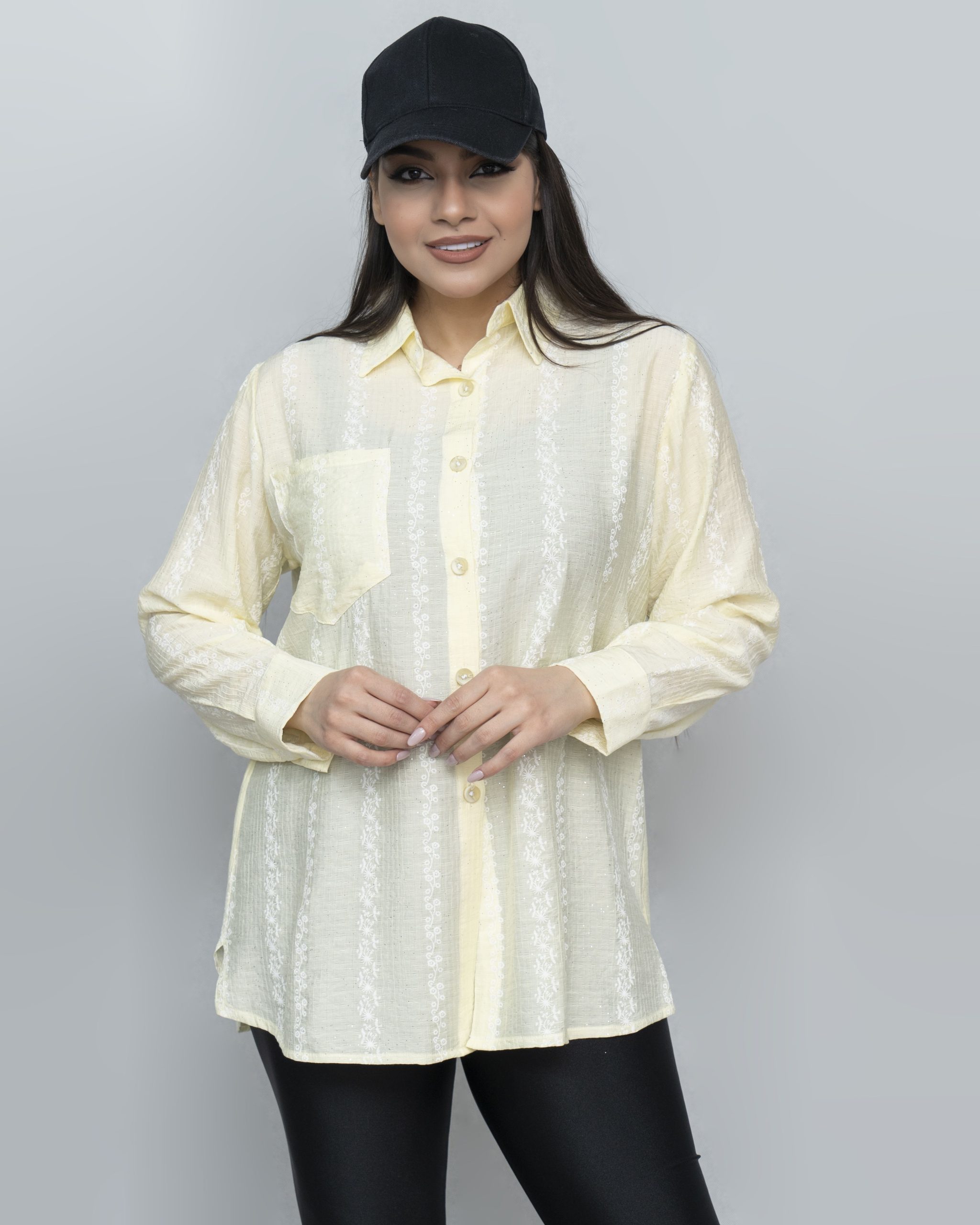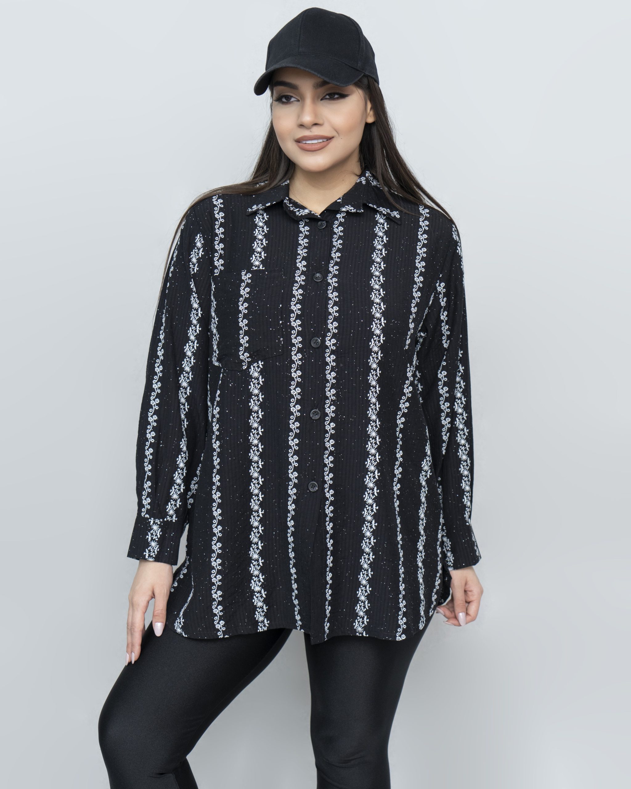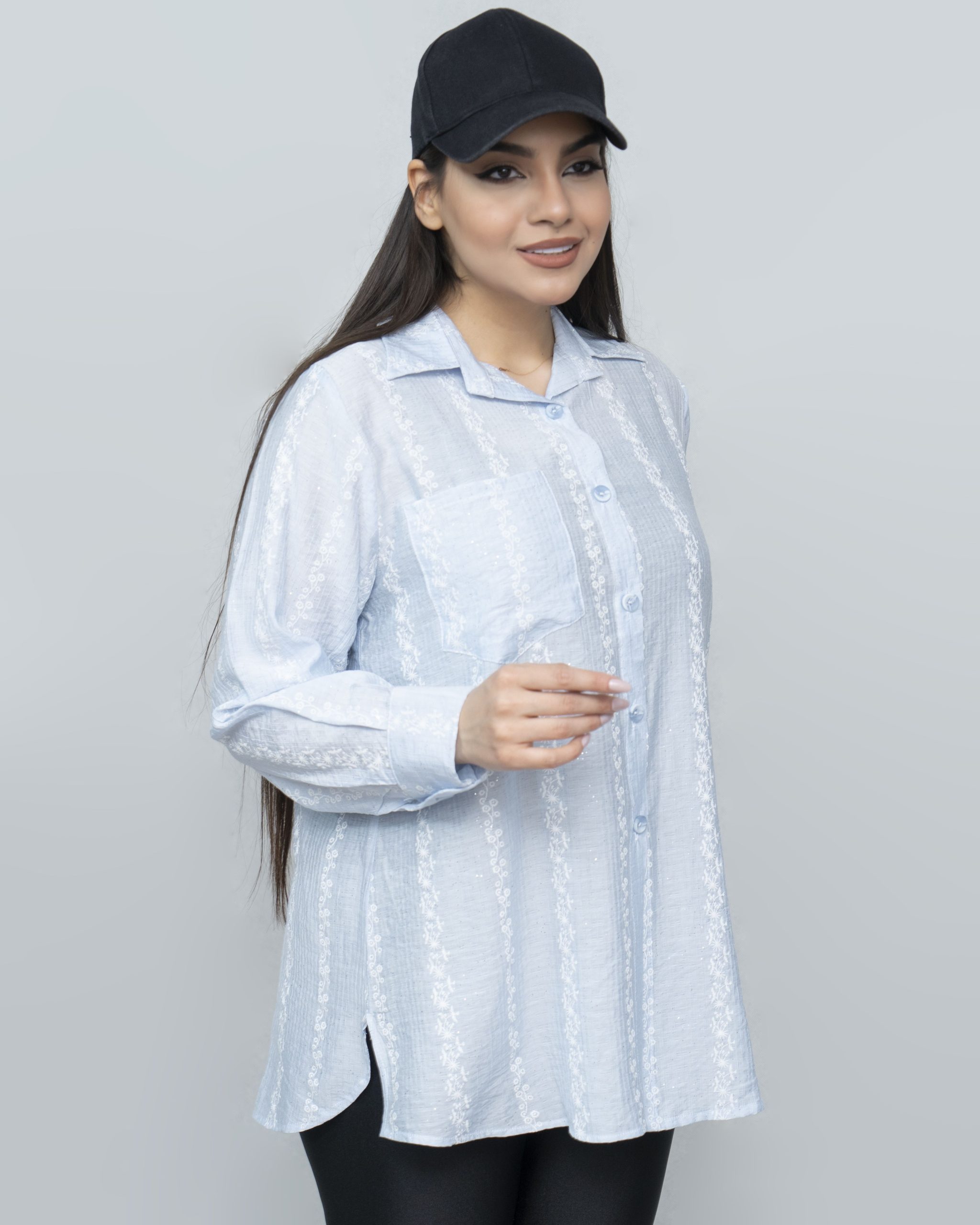 ➖️ مدل:شومیز حلقه آستین دار ➖️ کد:1015 ➖️ پارچه:شیشهای طرحدار اکلیلی ➖️ سایزبندی:فری(44تا48) ➖️ بسته بندی:5عدد ➖️ قدکار:80